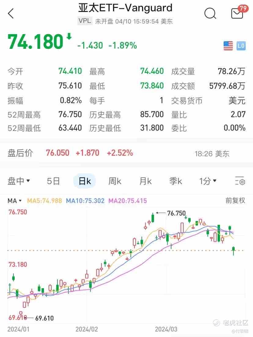 总之,亚太ETF-Vanguard(VPL)作为一只具有广阔投资前景的交易所交易基金,值得投资者关注。但在投资过程中,我们仍需保持谨慎和理性的态度,以实现投资收益的最大化。$亚太ETF-Vanguard(VPL)$