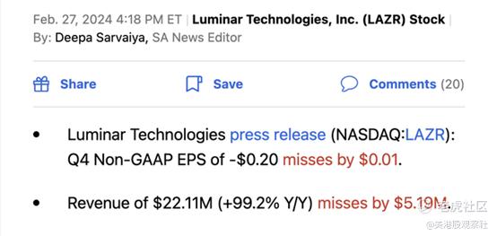 与预期相比,Luminar公布的23年第四季度业绩显得非常糟糕,以至于市场似乎已经放弃了这只股票。该公司报告了以下季度数据: