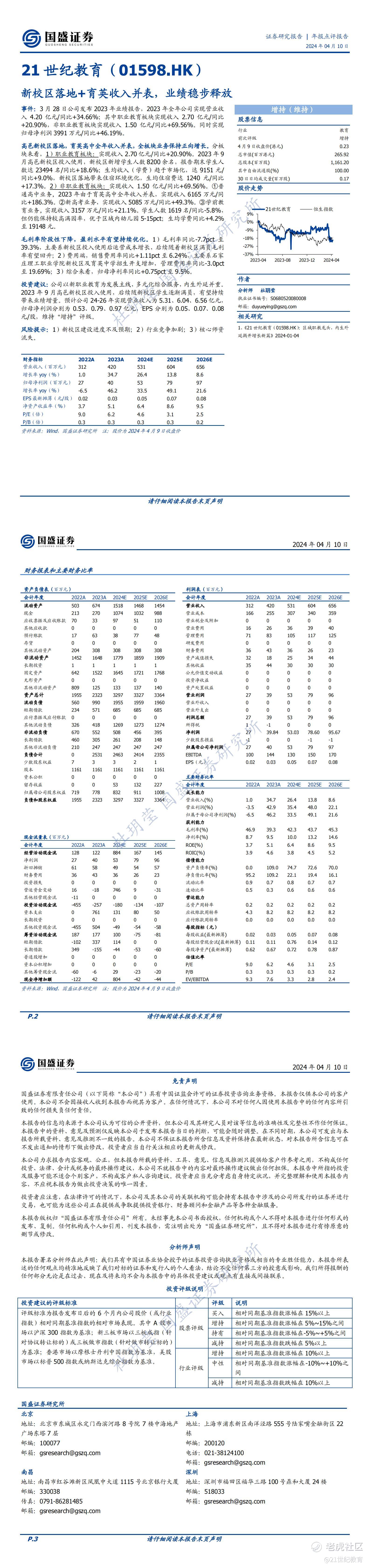 国盛证券研究报告:21 世纪教育(01598.HK) 新校区落地+育英收入并表,业绩稳步释放