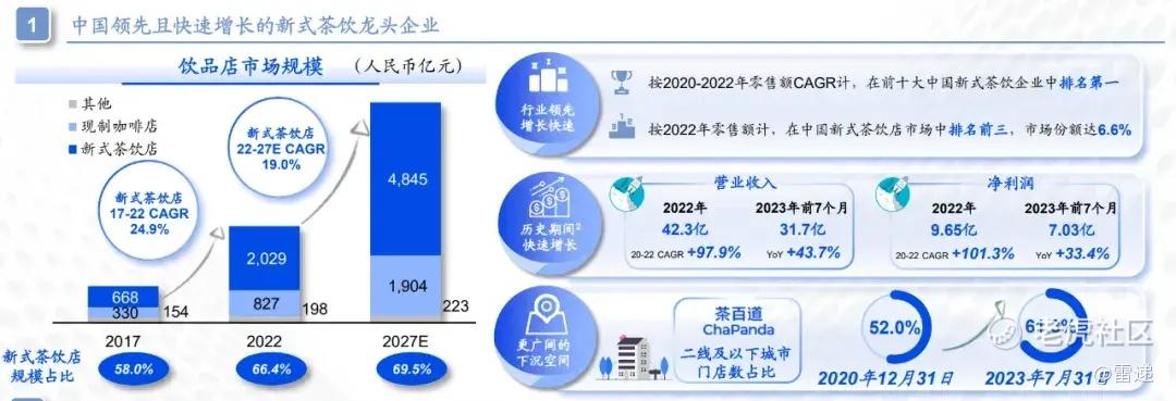 3,其他收入,主要来自茶百道门店设计服务;外卖平台的在线运营及管理服务;及茶百道直营店收入。