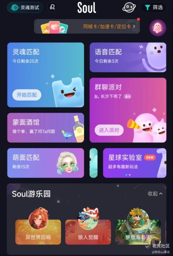 社交,需要有共同兴趣点。这也与Soul App一直主打的“游戏化兴趣社交”不谋而合。