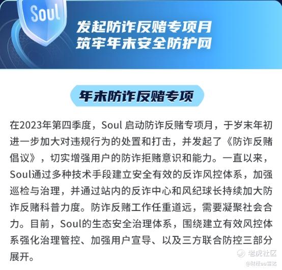 近期,新型开放式社交平台Soul App在创始人张璐的带领下发布了《2023年第四季度Soul生态安全报告》,详细展示了其在防诈反赌、社交礼仪建设、未成年保护、网络戾气治理等方面的专项治理措施和成效,引起了业界的广泛关注。