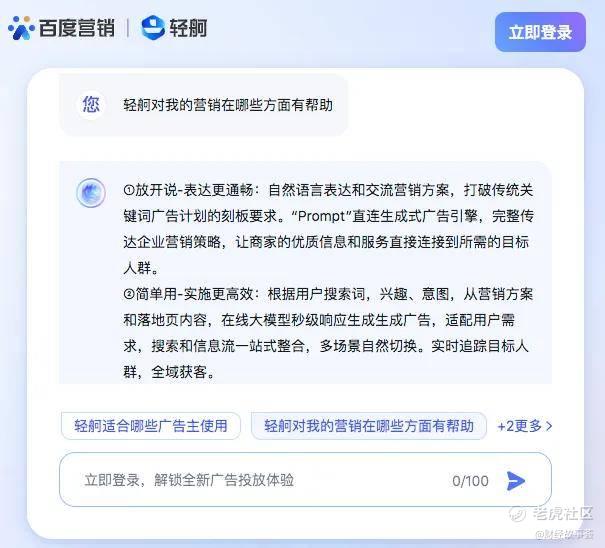 百度去年9月推出“轻舸”投放平台,侧重于目标人群的设置简化——此前,商家需要设置大量的搜索关键词圈定目标受众,如今只需用自然语言描述即可。