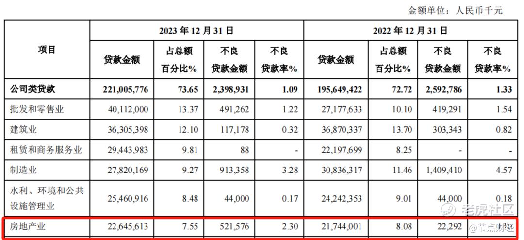 其中,投向房地产的贷款为226.46亿元,产生不良贷款金额5.22亿元;不良贷款率2.3%,对比2022年0.1%,大幅抬高2.2个百分点。