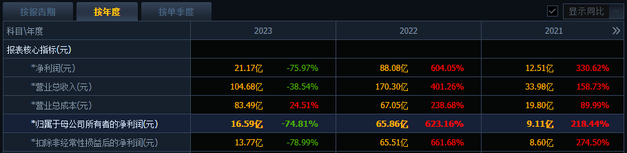 主要子公司天宜锂业2023年实现营收95.52亿元,对应净利润17.88亿元,较2022年均大幅下滑。2022年,其营收及净利润159.29亿元、87.78亿元。