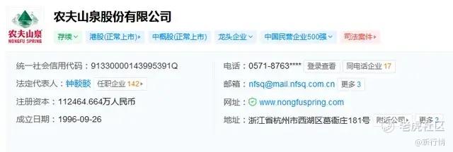天眼查显示,农夫山泉股份有限公司,位于浙江省杭州市,是一家以从事酒、饮料和精制茶制造业为主的企业。法定代表人,公司董事长钟睒睒。