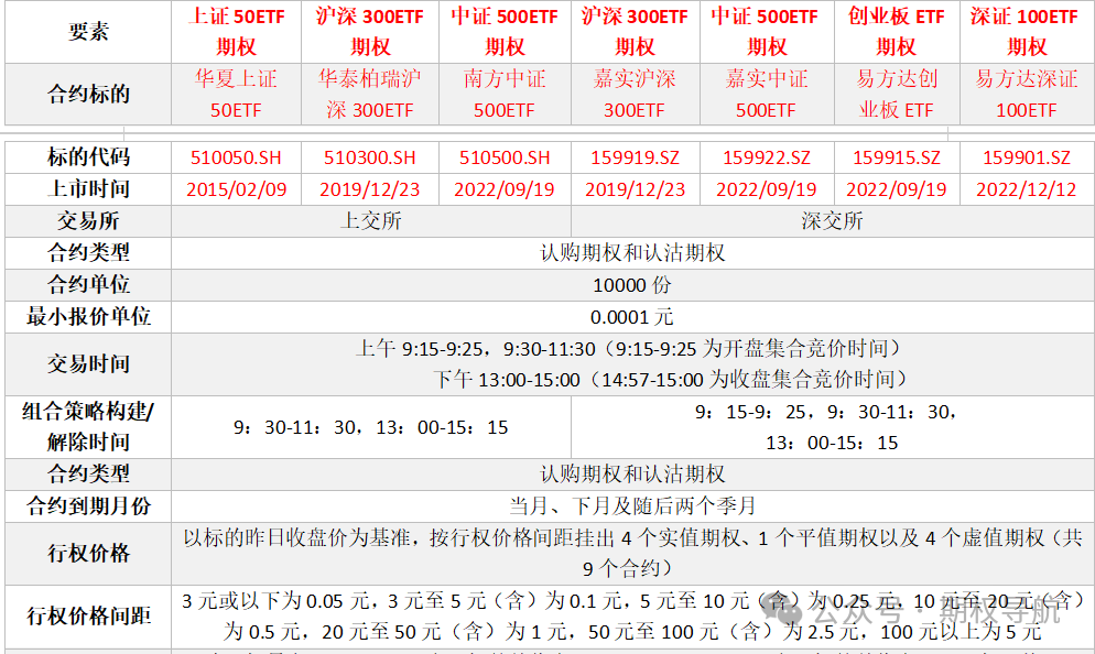 首先来看一下 ETF期权基本的要素有哪些: