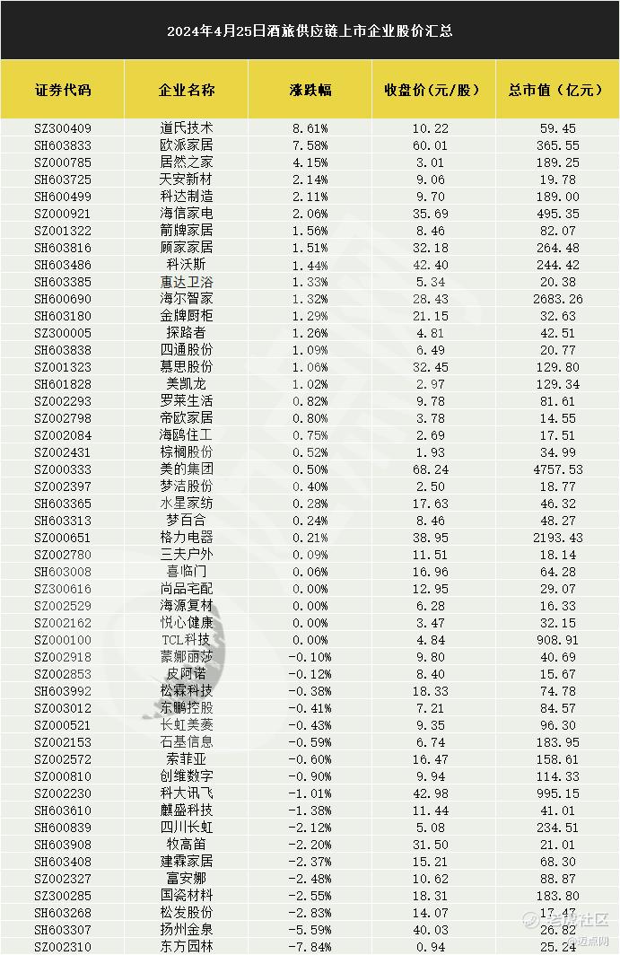 酒旅供应链个股方面,道氏技术(SZ:300409)涨超8%,欧派家居(SH:603833)涨超7%,居然之家(SZ:000785)涨超4%,天安新材(SH:603725)、科达制造(SH:600499)等涨超2%。