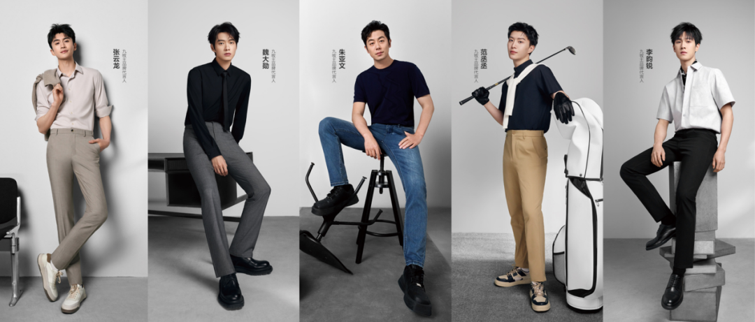 首先,九牧王一口气官宣五位代言人,不仅在阵容和声量上占了上风,更重要的是,五位代言人囊括从80后-00后各个年龄段的优质男星,由他们身穿“品质五裤”演绎时尚大片,直观地展现出九牧王能够满足各个年龄层消费者对男裤的需求,传递出九牧王国民男裤的价值。