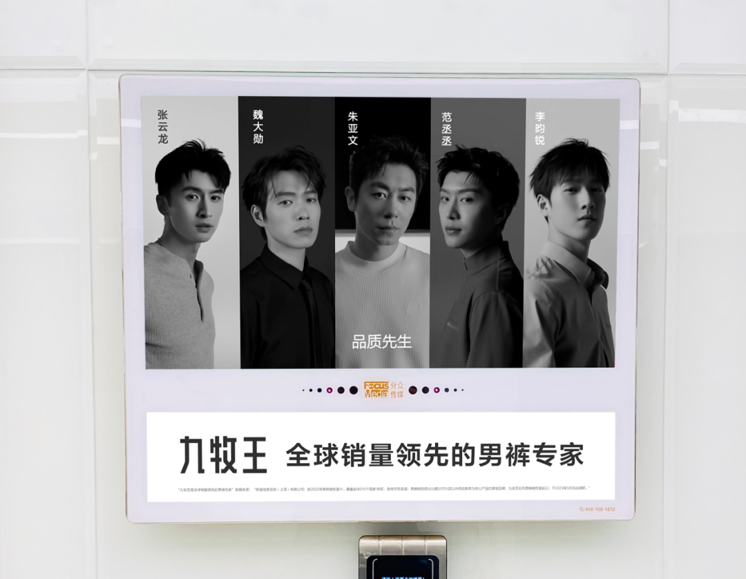 九牧王还布局线上微博、抖音、小红书等社交平台,以及线下全国分众电梯媒体,高调开启大规模投放,点燃话题热度,将“品质先生有九牧王”主张广而告之。此举为九牧王赢得空前的流量和关注,实现营销效果的最大化,也完成品牌价值的再跃升。
