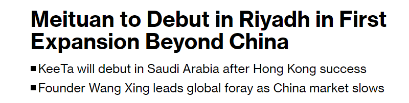 在本地竞争加剧、甚至消费放缓情况下,美团寻求增长。进军利雅得前,美团于2023年成功进入香港市场。