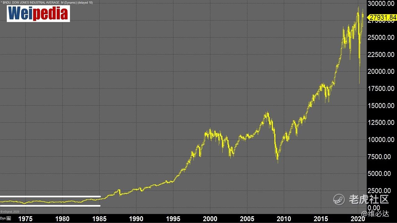 上图为对数表示的道琼斯指数图,这可以更好的理解道琼斯指数在1980年之前的走势。