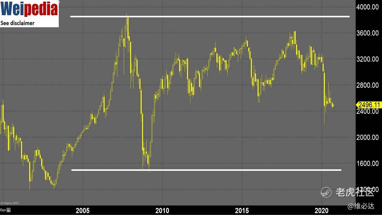 类似的,在过去20年间,中国的金融市场一直处于在区间交易范围内。然而,这种情况可能即将发生改变,因为它现在正将自己定位为我们下一代的一个超级金融市场。