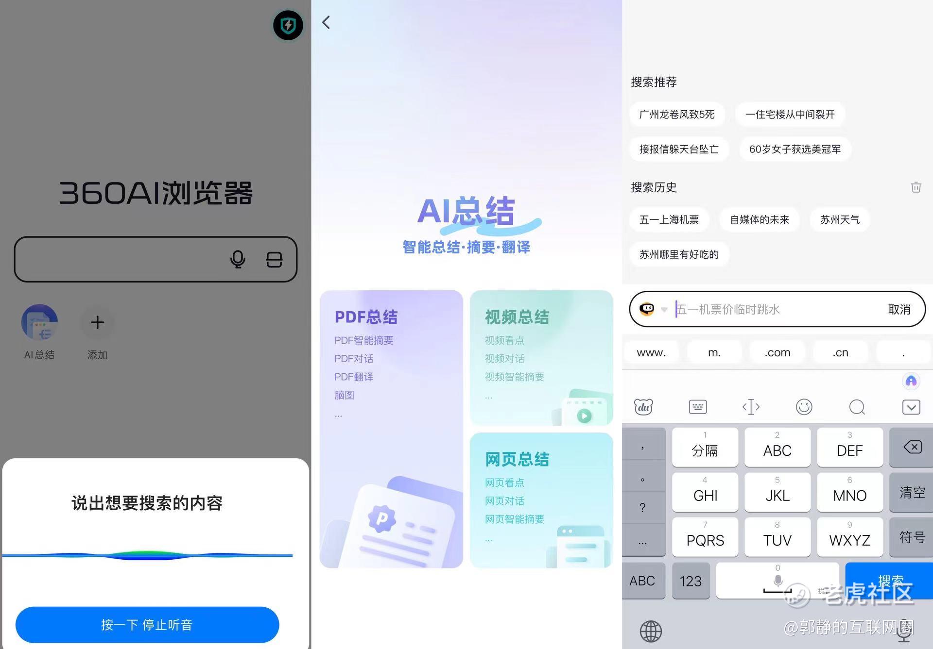 据郭静的互联网圈观察,这款“360AI浏览器”App与360在2024年1月26日上线的“360AI搜索”App功能上是重叠的,“360AI浏览器”的搜索结果,其实就是“360AI搜索”的搜索结果,而且“360AI搜索”同样有AI总结功能,可以对PDF、视频、网页进行总结。