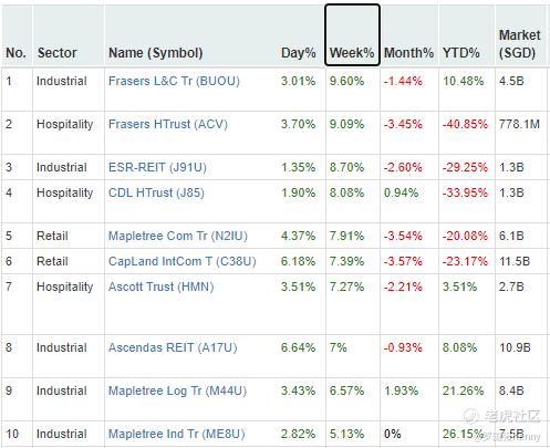 新加坡房托基金一周最大涨幅 (资料来源:https://stocks.cafe/kenny/advanced)