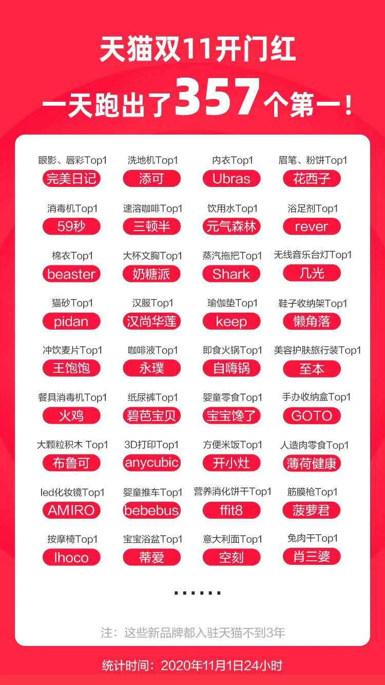 从目前公开的预售数据来看,今年的天猫双十一开门红完美日记荣获眼影、唇彩品类的销售第一,完美日记30分钟预售超就超过了去年全天。