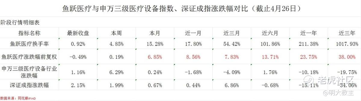 截止4月26日,鱼跃医疗在与申万三级医疗设备行业、深证成指、中证全指医疗器械指数涨幅对比中,短、中、长期涨幅均占优。其中鱼跃医疗近3年涨幅38%,大幅好于申万三级医疗设备指数-19.75%以及中证全指医疗器械指数-20.61%的表现。