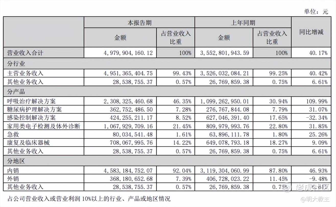 (鱼跃医疗财报数据统计)