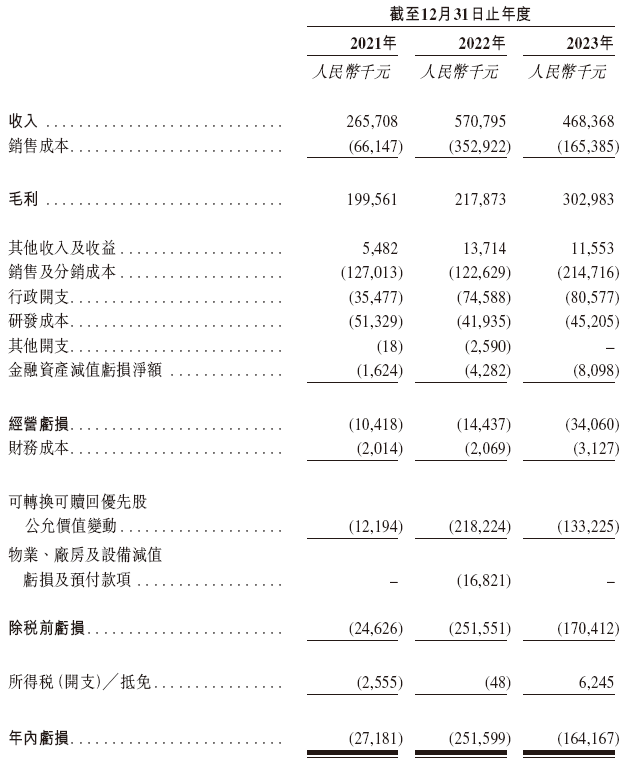招股书显示,在过去的2021年、2022年和2023年,优迅医学的营业收入分别为人民币2.66亿、5.71亿和4.68亿元,相应的净亏损分别为0.27亿、2.52亿和1.64亿元人民币。