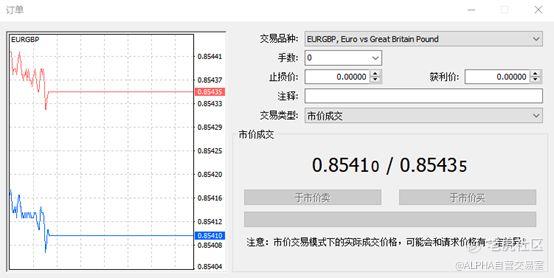 市价订单是指以当前市场实时价格成交的订单。例如EUR/USD当前的卖价为1.1128,而买价为1.1130。如果你想在市场上购买EUR/USD,那么市场将以1.1130的价格卖给你。在软件图表上右键单机,选择“单机交易”选项,就会跳出来下图所示的按钮: