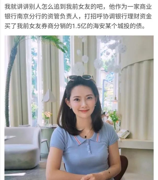 原来,女友在分销一个很难卖的债券时,选择和兴业银行南京资管负责人睡觉,然后协调兴银理财按照票面5.5认购了1.5亿。