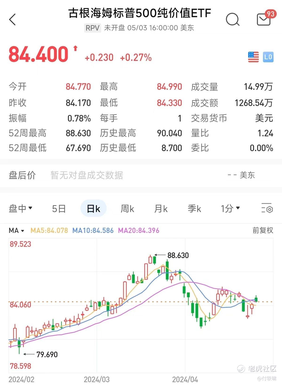 因此,我们认为RPV在未来一段时间内有望继续上涨。对于长期投资者而言,可以考虑逢低买入并持有该ETF产品;对于短期投资者而言,则可以根据市场动态和自身风险偏好进行灵活操作。当然,投资者在做出投资决策时还需结合自身的资金情况和风险承受能力进行综合考虑。$Invesco S&P 500 Pure Value ETF(RPV)$