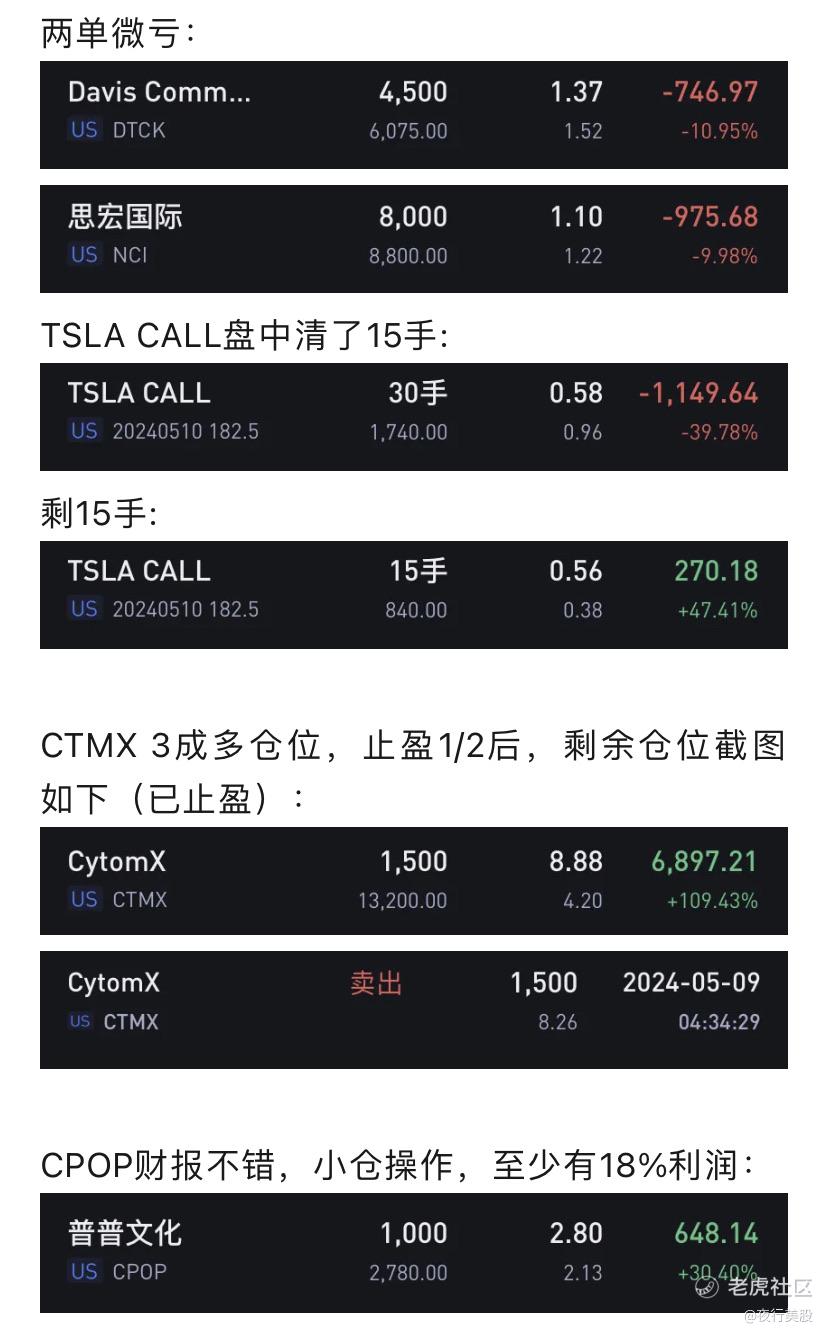 $CytomX(CTMX)$ $普普文化(CPOP)$ CTMX财报赚不少,还好及时走了[笑哭] CPOP没拿住只赚了30%,仓位也小了,拿一夜也翻倍了。下次财报好的票就大仓位搞吧[捂脸] 小票亏不少,赚回来了,有盈余~