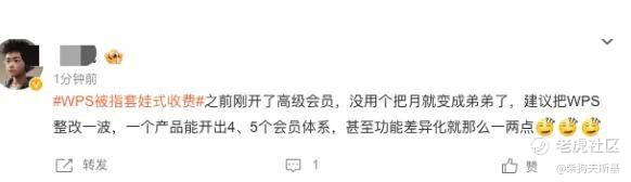 「之前刚开了高级会员,没用个把月就变成弟弟了,建议把WPS整改一波,一个产品能开出4、5个会员体系,甚至功能差异化就那么一两点」