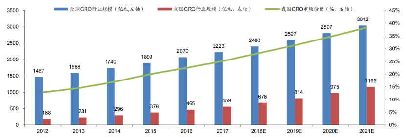 图3:中国和全球CRO市场规模及增速 来源:海通证券研究所