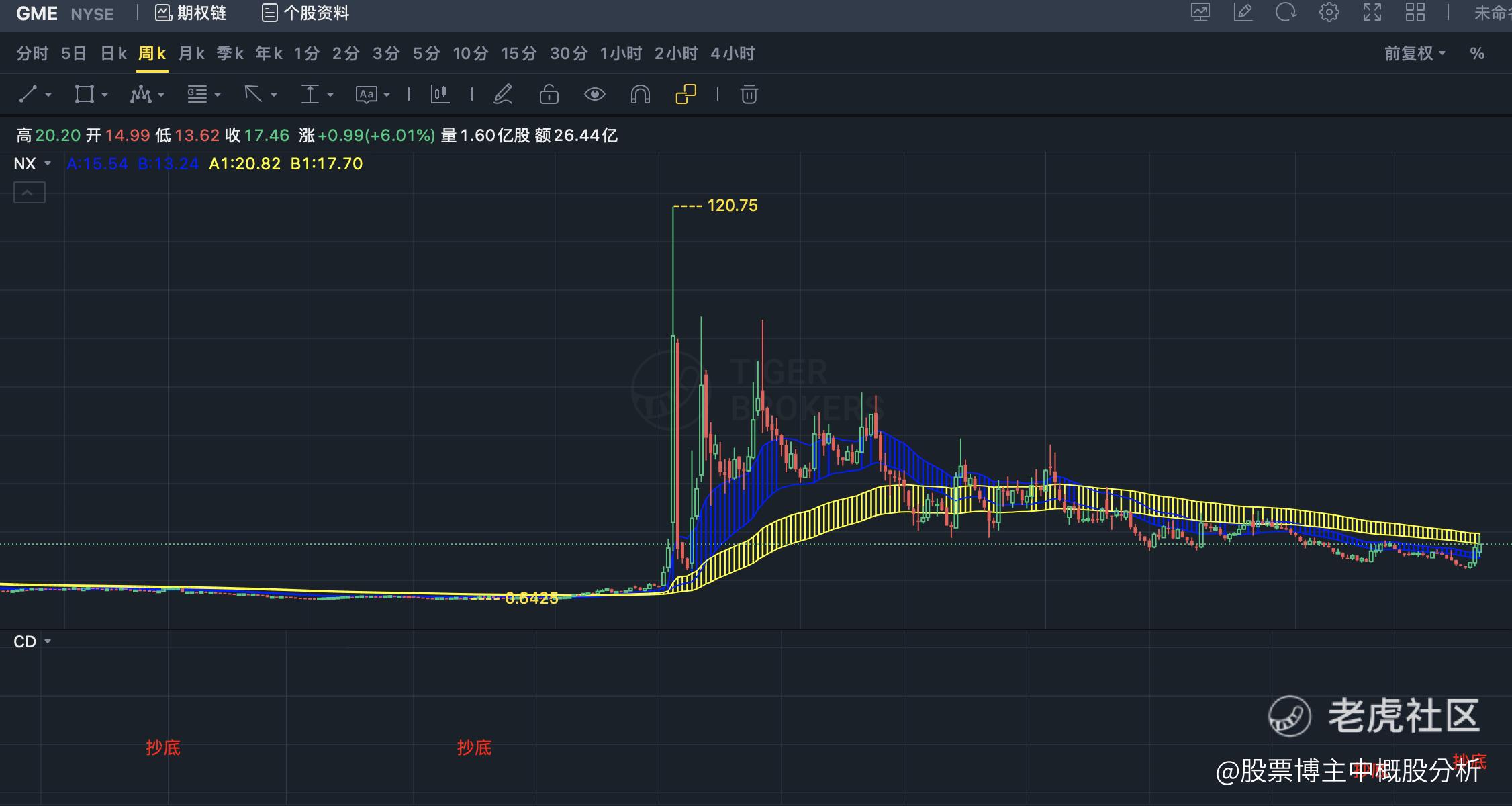 说下GME,当年的妖股之王:上次也是双抄底提示,然后涨了100倍。这次又是双抄底。暴涨是肯定的。不过这一波要小心一些。