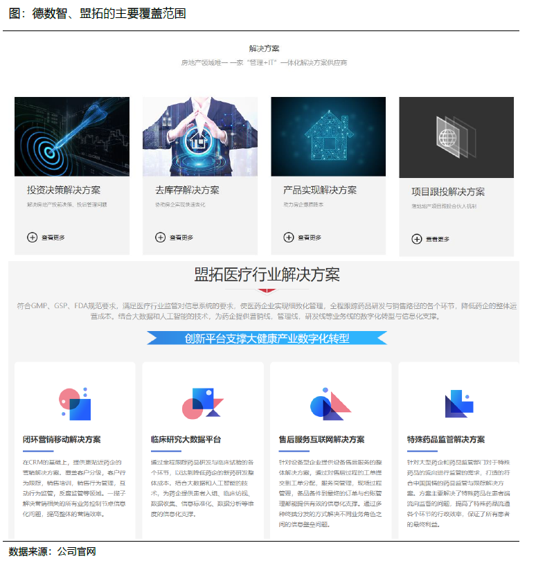 - 第一、 公司在地产行业声名远扬,所有垂直解决方案的市占率高且稳定,先发优势明显;