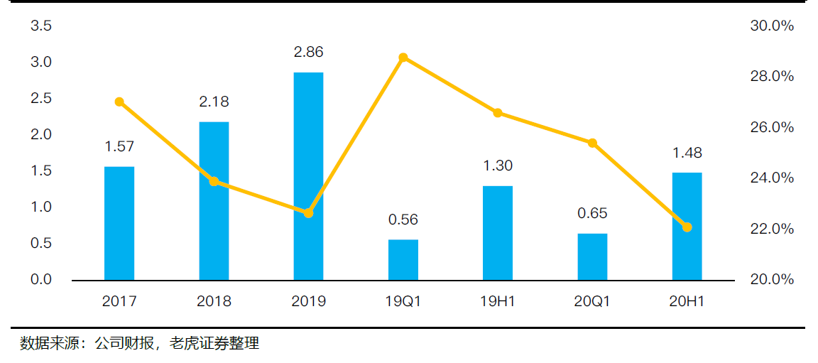 2020年上半年净利润0.85亿元,同比增长41%,主要也是因为SaaS业务的亏损不断减小。
