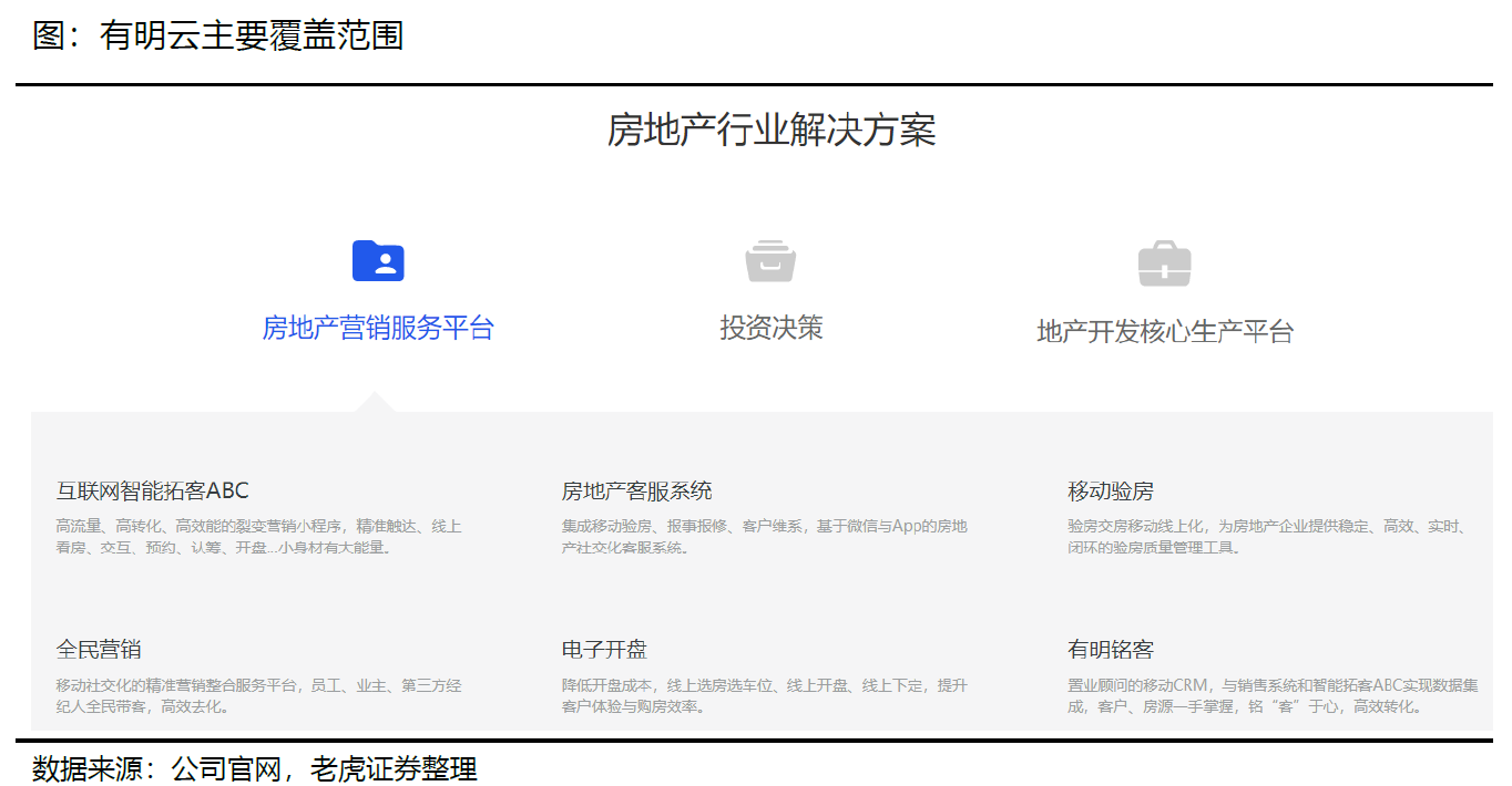 有明云起家于核心地产、商业运营ERP产品,也是一样在近年来转型SaaS,主要客户包括$绿地控股(600606)$ ,包括案场SaaS应用产品和企业中台有明云服务平台。其产品特征更偏向于PaaS。明源云的竞争优势