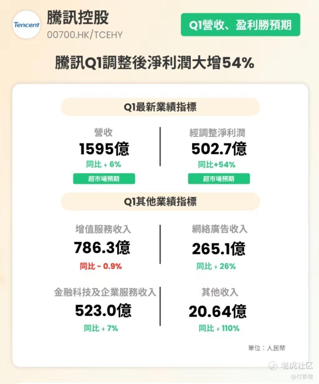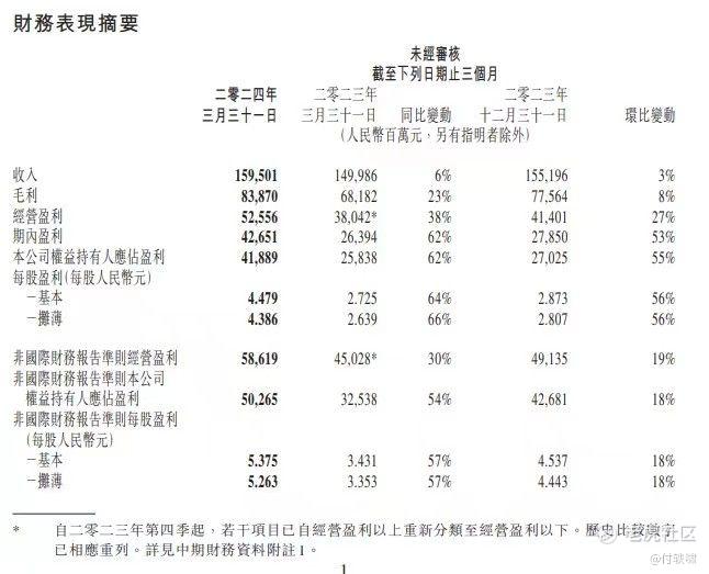 腾讯控股(00700.HK),作为中国互联网行业的领军企业,其业绩表现一直备受市场关注。北京时间2024年5月14日,腾讯控股公布了截至2024年3月31日的第一季度财报。