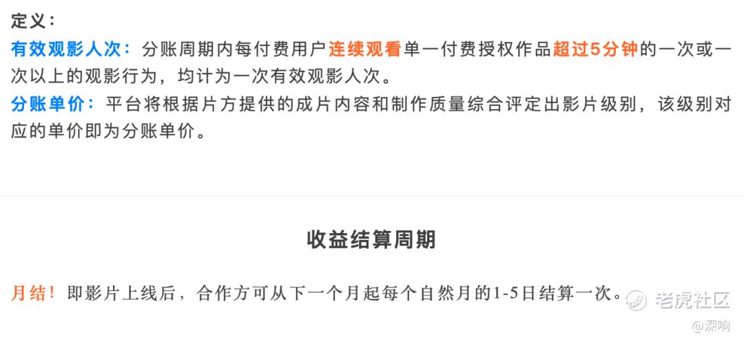 比如在今年3月5日,腾讯视频公布了全新升级后的网络电影分账细则。