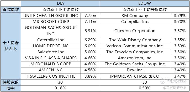 道指也有对应的等权版本:EDOW,对于不希望被股价大幅上涨的公司所影响的投资者,EDOW提供了一个更合适的选择。