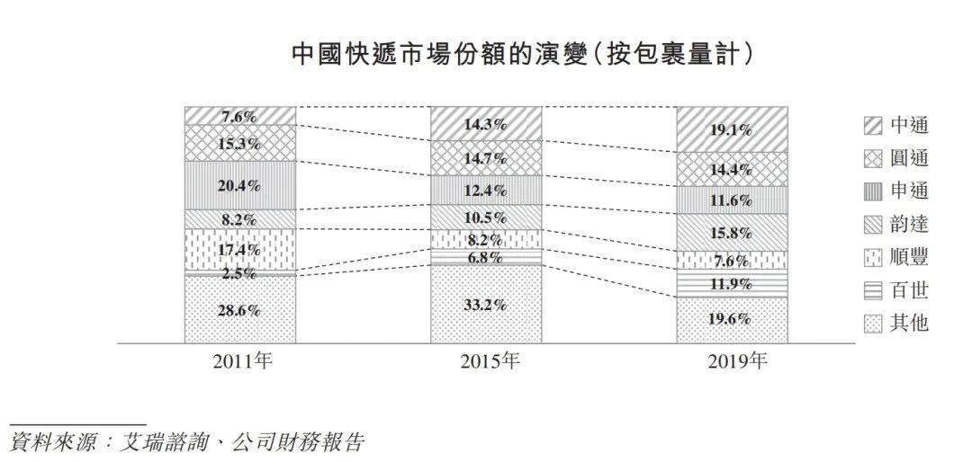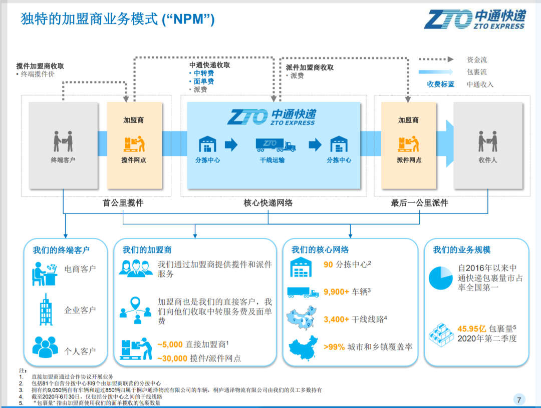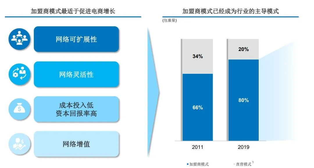 中通在其2020年二季报电话会议上称,加盟商模式的快递公司正在从直营模式的快递公司夺取市场份额,而中通快递在加盟商模式的快递公司之中不断获得更多市场份额。
