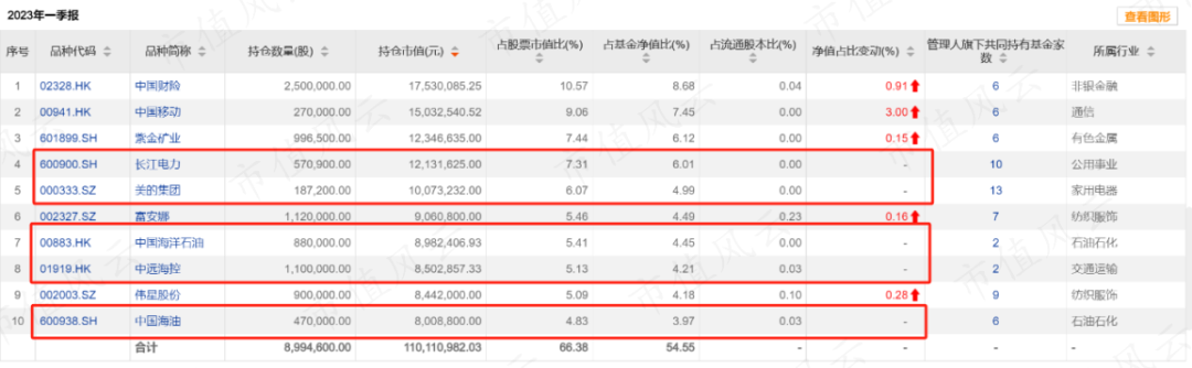 与此同时,他在多只基金上建仓中国海油、长江电力、美的集团等高分红防御型股票,加上原来的中国移动、中国财险、富安娜等,构成一个我们所熟知的高股息组合。
