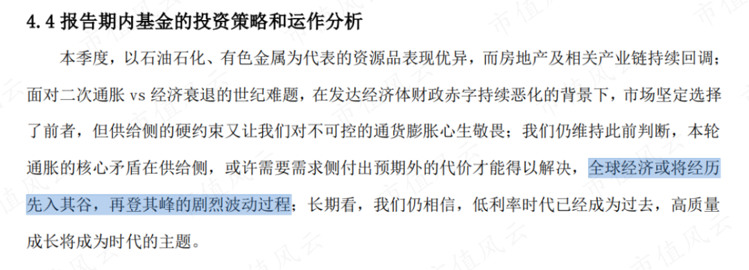另外,在2024年一季报中,杨思亮看衰后市全球经济的表现,认为“全球经济或将经历先入其谷,再登其峰的剧烈波动过程。