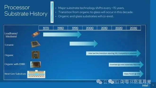 作为封装基板领域的探索引领者,2023年9月,英特尔推出基于下一代先进封装的玻璃基板开发的最先进处理器,计划于2026~2030年量产。