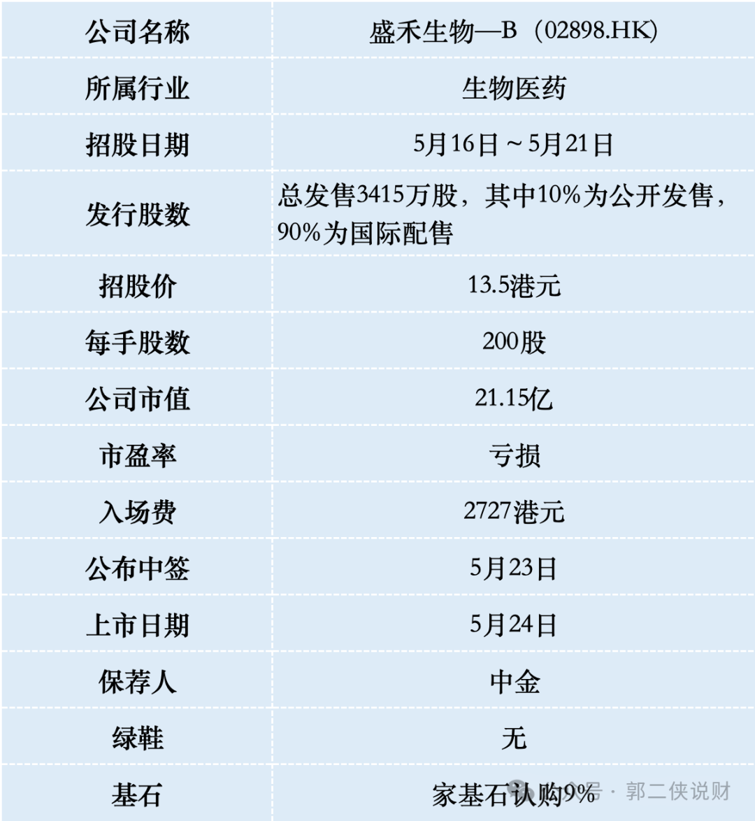 港股打新 — 盛禾生物—B