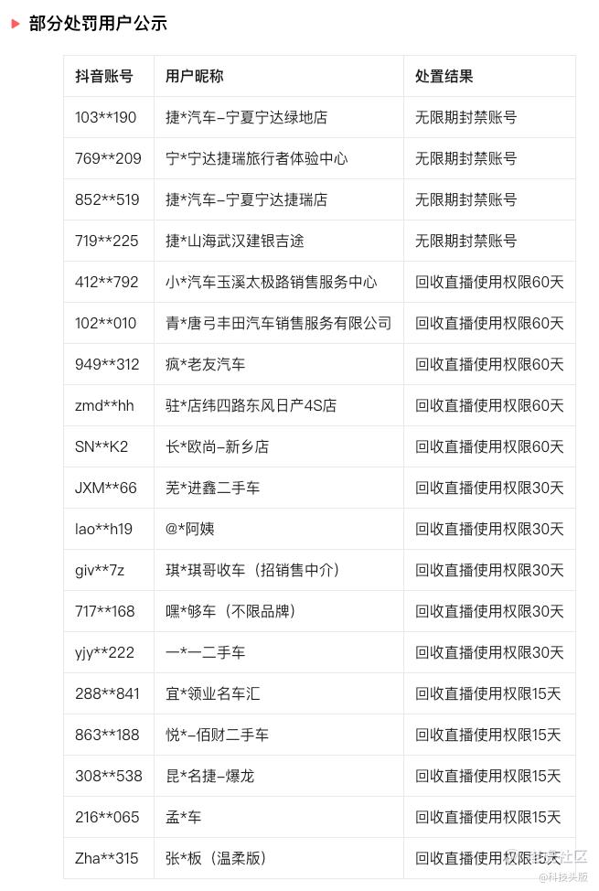 为此,抖音平台对违规行为进行了全面整治,今年4月至今共处罚违规账号2632个,对存在严重违规行为的582个账号回收了直播权限,其中无限期封禁账号24个。