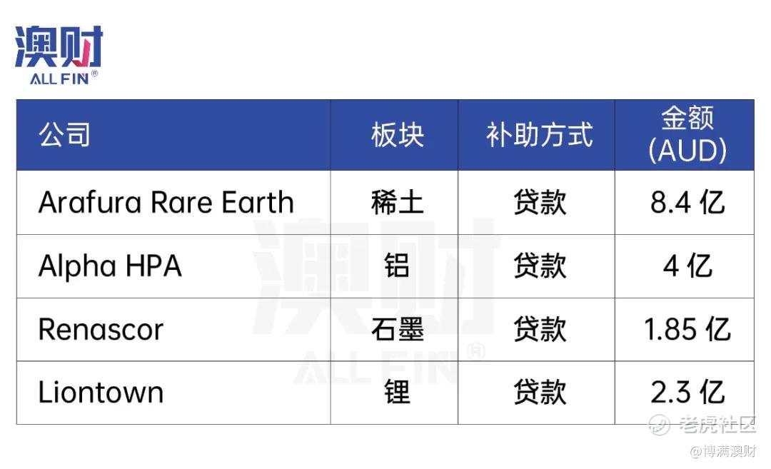 为了支持关键矿产的发展,预算案的部分资金还将用于支持澳大利亚本土矿业的发展,投资到数个矿业公司上。(如下图所示)