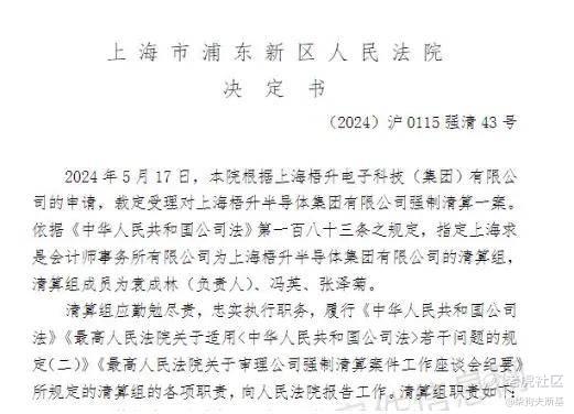 根据裁定书,强制清算上海梧升半导体,申请方梧升电子科技,表示上海梧升半导体已解散,无法自行清算为由,所以申请强制清算。