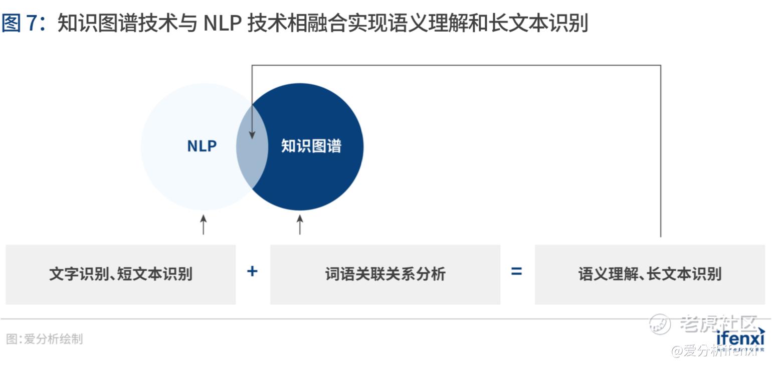自然语言处理(NLP)技术与知识图谱技术之间存在较大交叉,面对复杂语义,可以利用知识图谱技术与自然语言处理相结合的应用,更好的服务与长文本处理;传统自然语言处理对于短文本有较好的处理效果,但面对长文本,尤其前后具备逻辑关系的语言,往往处理较差。知识图谱技术的应用解决长文本与长语句处理问题,使得智能客服、机器翻译、文本处理等应用有长足的发展。