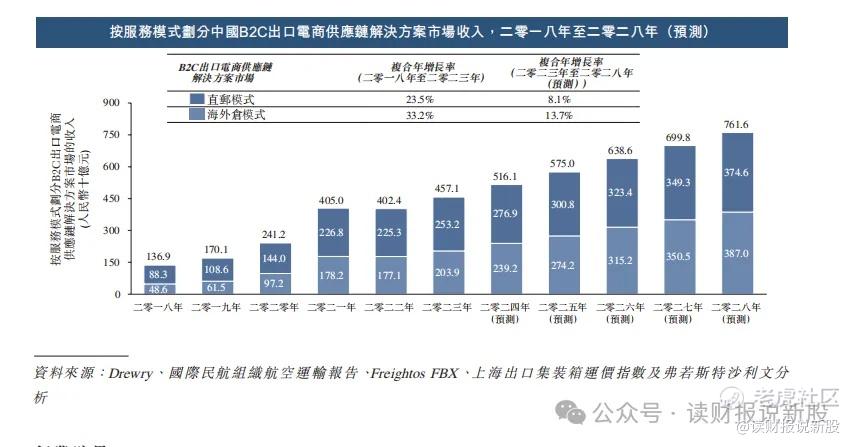 行业上,这种海外仓储模式的跨境物流,增速还不错,2023-2028年年复合增速为13.7%