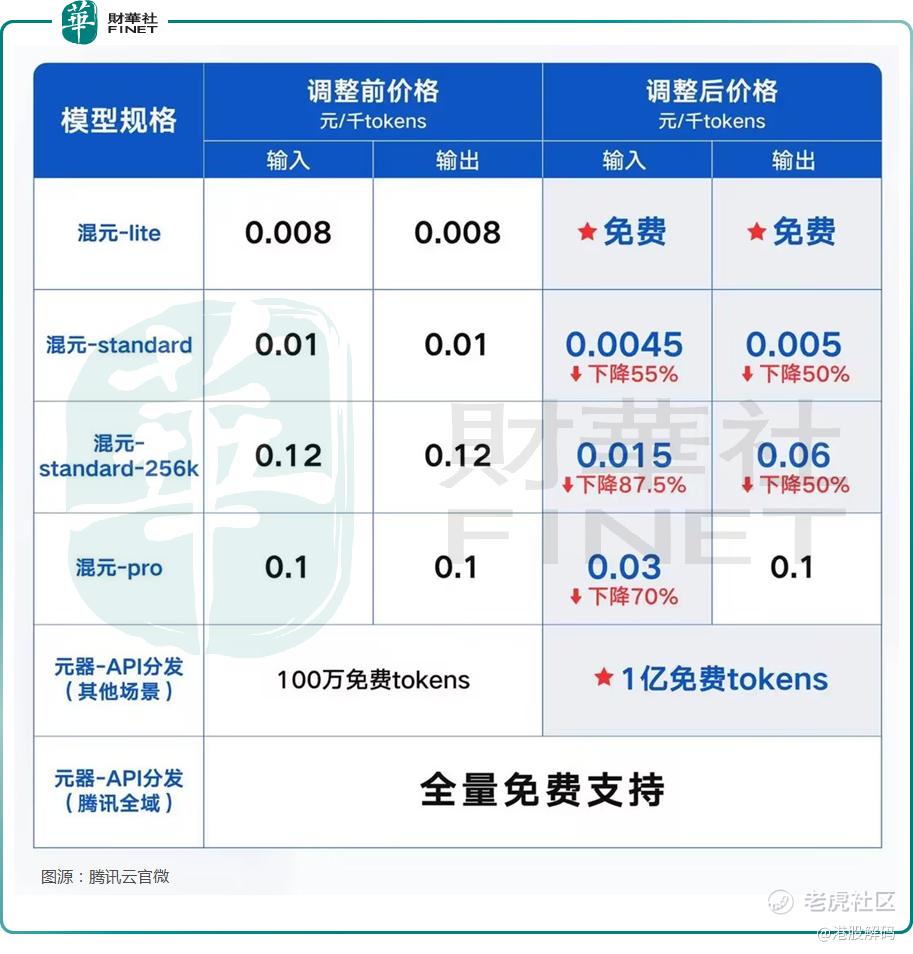 5月22日,腾讯云公布全新大模型升级方案,旗下主力模型之一混元-lite模型,API输入输出总长度计划从目前的4k升级到256k,价格从0.008元/千tokens调整为全面免费。混元-standard API输入价格下降55%,API输出价格下降50%。新上线的混元-standard-256k,API输入价格下降87.5%,API输出价格下降50%。最高配置万亿参数模型混元-pro,API输入价格降幅达70%。