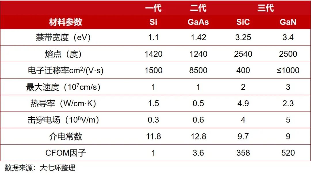 因为GaN、SiC的物理特性,如大带隙、高热导率等,相对于Si、GaAs等一、二代半导体器件,三代半导体器件具有高频、高功率、耐高温、抗辐射等特性,因而在电力电子、射频器件领域产生,可以部分替代Si基器件。