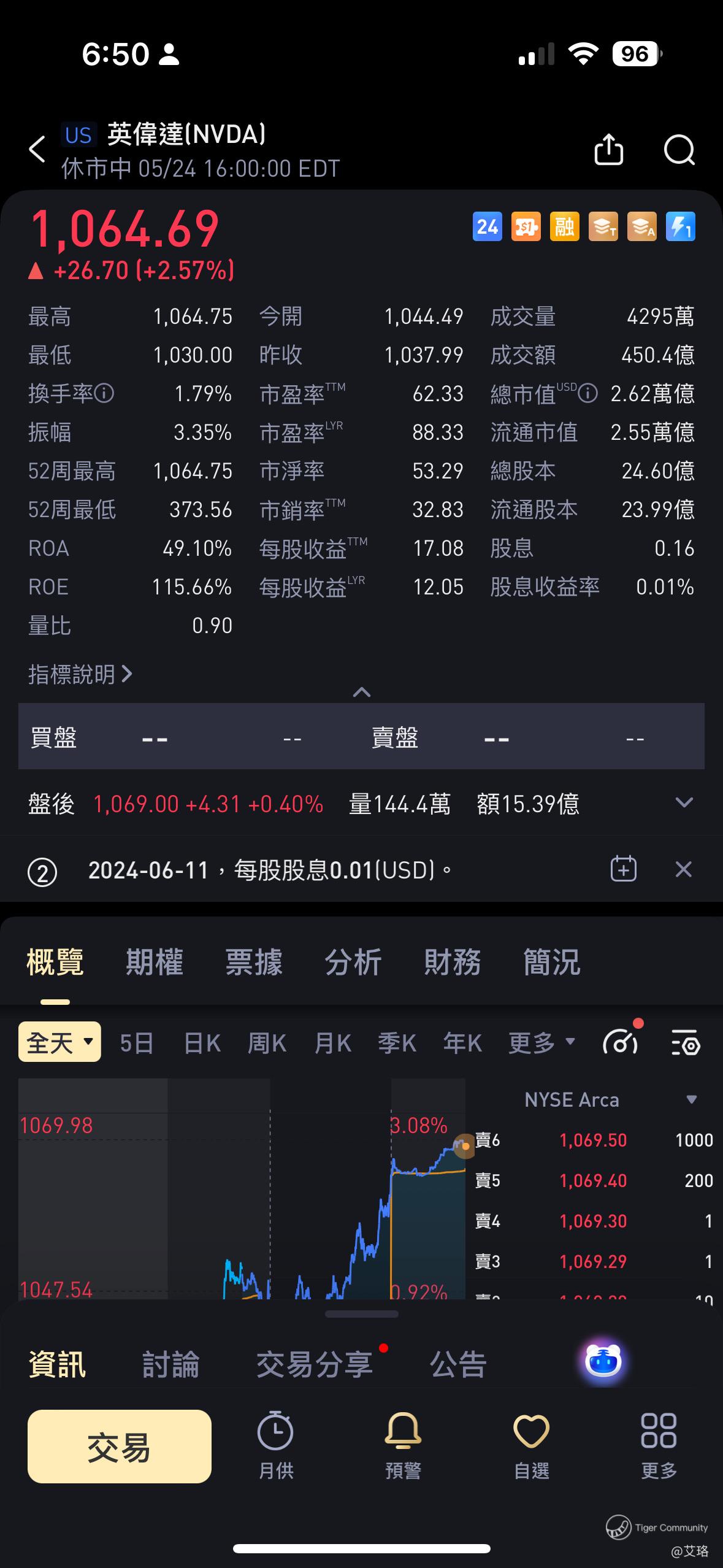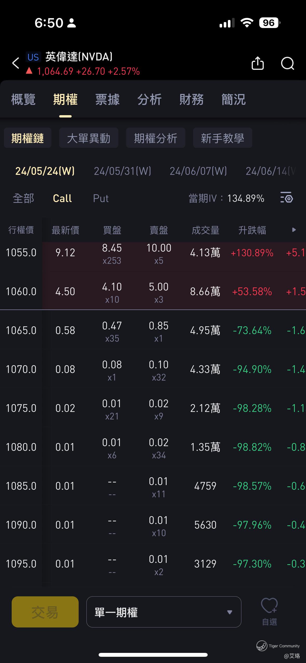 如果我买了1065 的Nvda Call,而收盘价并不到达1065,盘后却到了1069,那么这情况还可以行权吗?