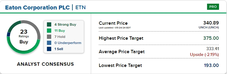在其他方面,Mizuho的Brett Linzey强调了Eaton的“收入增加可见性”,鉴于其旨在满足回流和数据中心的需求的“大型项目”。Mizuho给出的365美元的看涨预测意味着该股较上周五收盘将上涨7%。